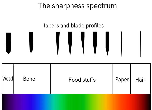To create a sharpened edge that is fine and thin enough to cut hair or paper will result in chips and nicks when that edge comes into contact with harder substances such as bone, gristle, pips and nuts, stone surfaces or other cutlery in drawers or dishwashers.